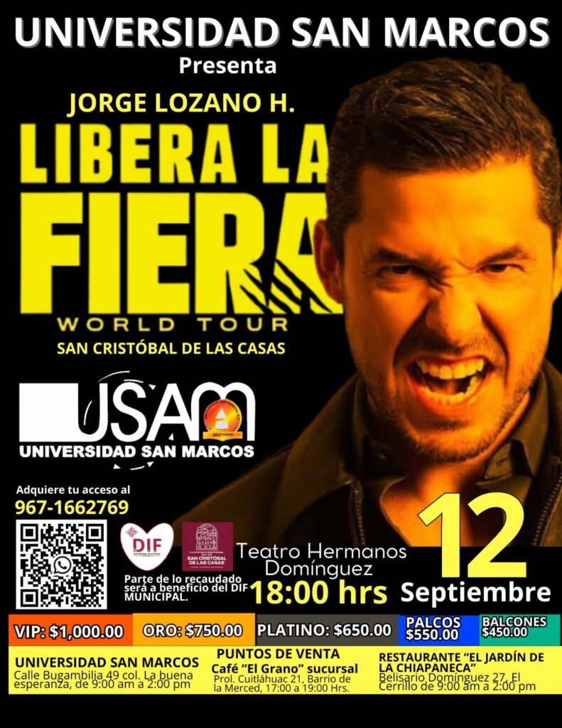 El próximo 12 de septiembre se presentará el popular conferencista Jorge Lozano H. en el teatro “Hermanos Domínguez” de San Cristóbal de las Casas a las 18:00 horas, estando las localidades prácticamente agotadas al cierre de la presente edición.